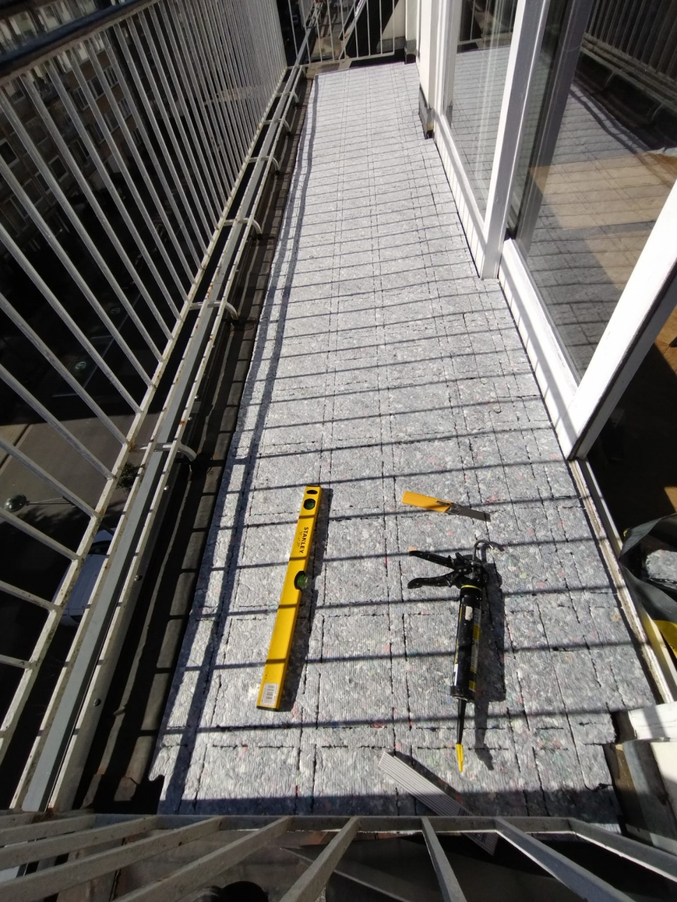 Les différentes étapes pour faire un travail de qualité sont ceux d'une terrasse. A la place de gazon textile pourrait être mis du carrelage ou autre. Voici en photos les différentes étapes.