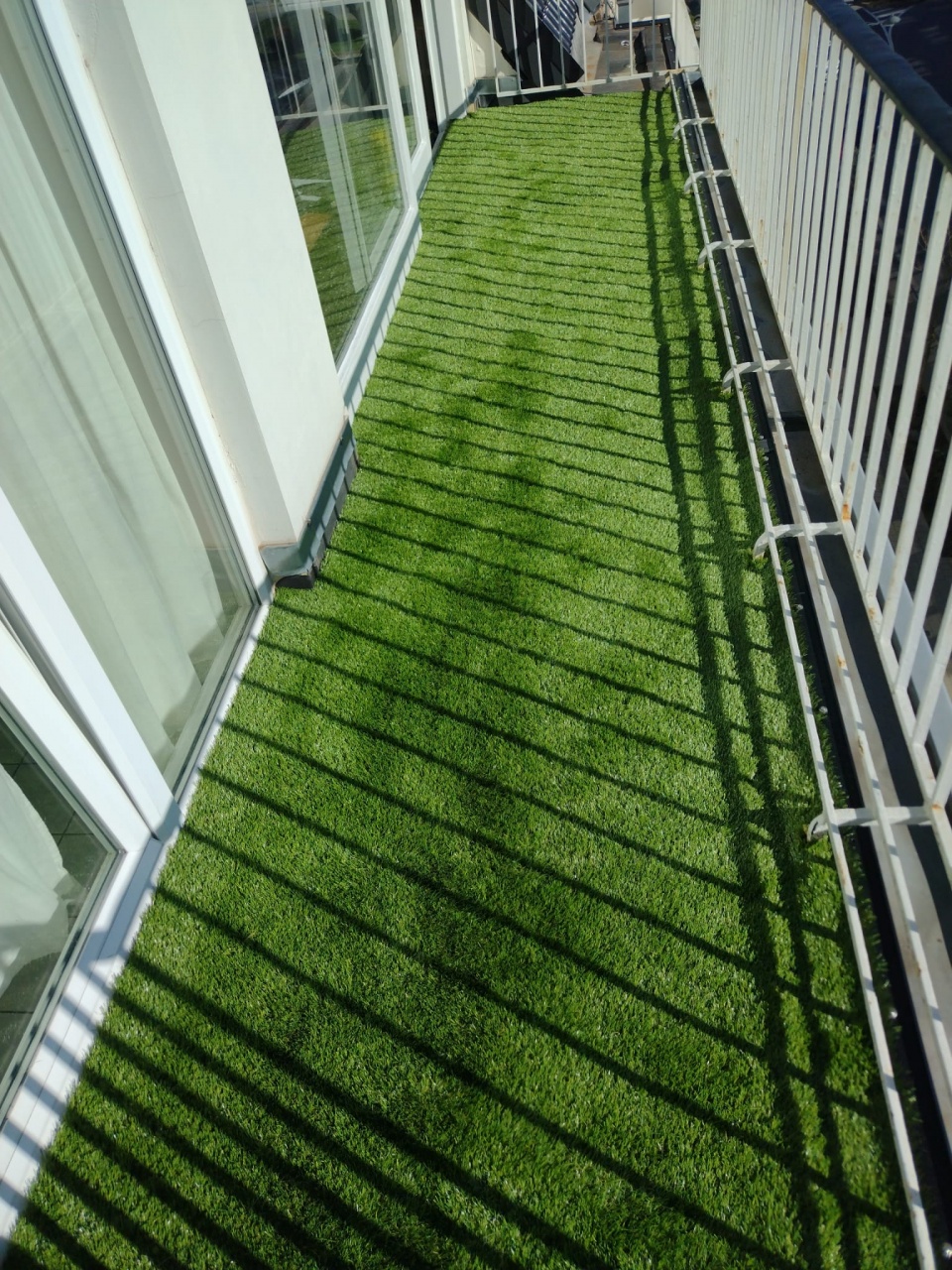 Nous posons des rouleaux de gazon textile de qualité (Résigrass garanti 10 ans). Le travail est le même que pour une terrasse : Stabilisé ou dalle puis vient la pose de gazon. Le résultat est exceptionnel mais demande un travail conséquent.